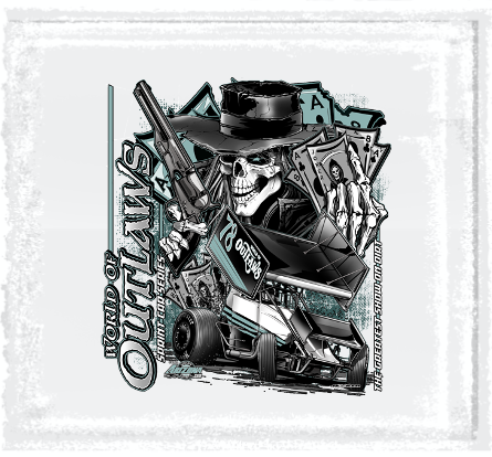 The World of Outlaws Decal features a bold western cowboy skull with a pistol, perfectly capturing the rugged spirit of dirt track racing. Measuring approximately 5", this high-quality decal combines the thrill of sprint car racing with a wild west edge. Ideal for fans who appreciate a touch of toughness and excitement, this decal is perfect for your car, laptop, or race gear. Show off your love for the World of Outlaws and sprint car racing in a unique and striking way with this one-of-a-kind decal.