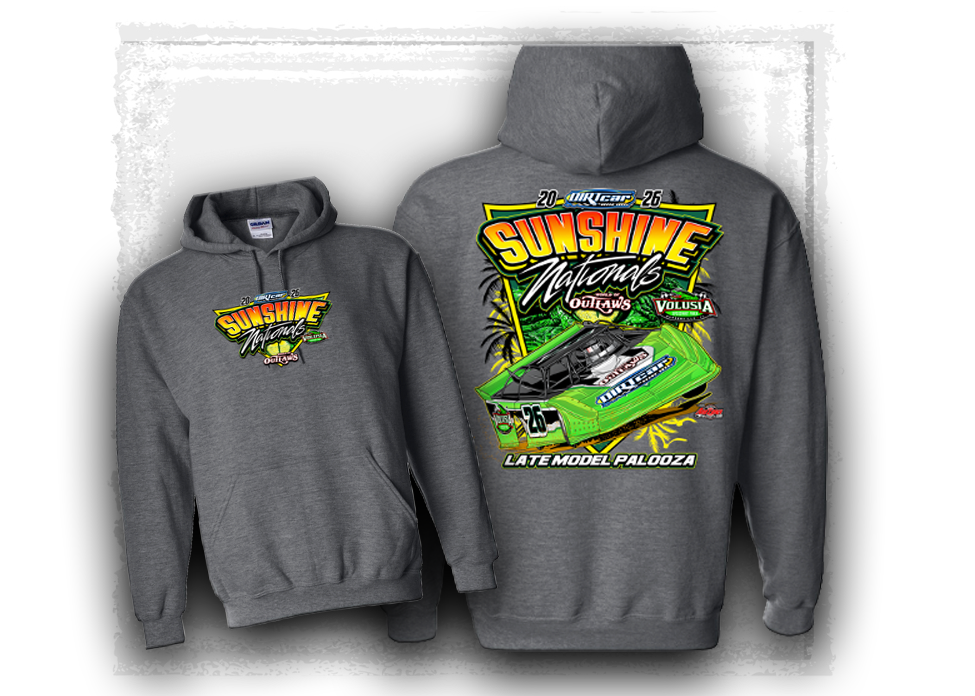 Celebrate Late Model Palooza at Volusia Speedway Park with the Sunshine Nationals Hoodie. This hoodie captures the energy of the World of Outlaws Late Models and DIRTcar Late Models as they converge for one of dirt racing’s most anticipated showdowns. Lightweight, comfortable, and built for race day, it’s the perfect hoodie for long nights at the track or everyday wear that shows your love for dirt Late Model racing!