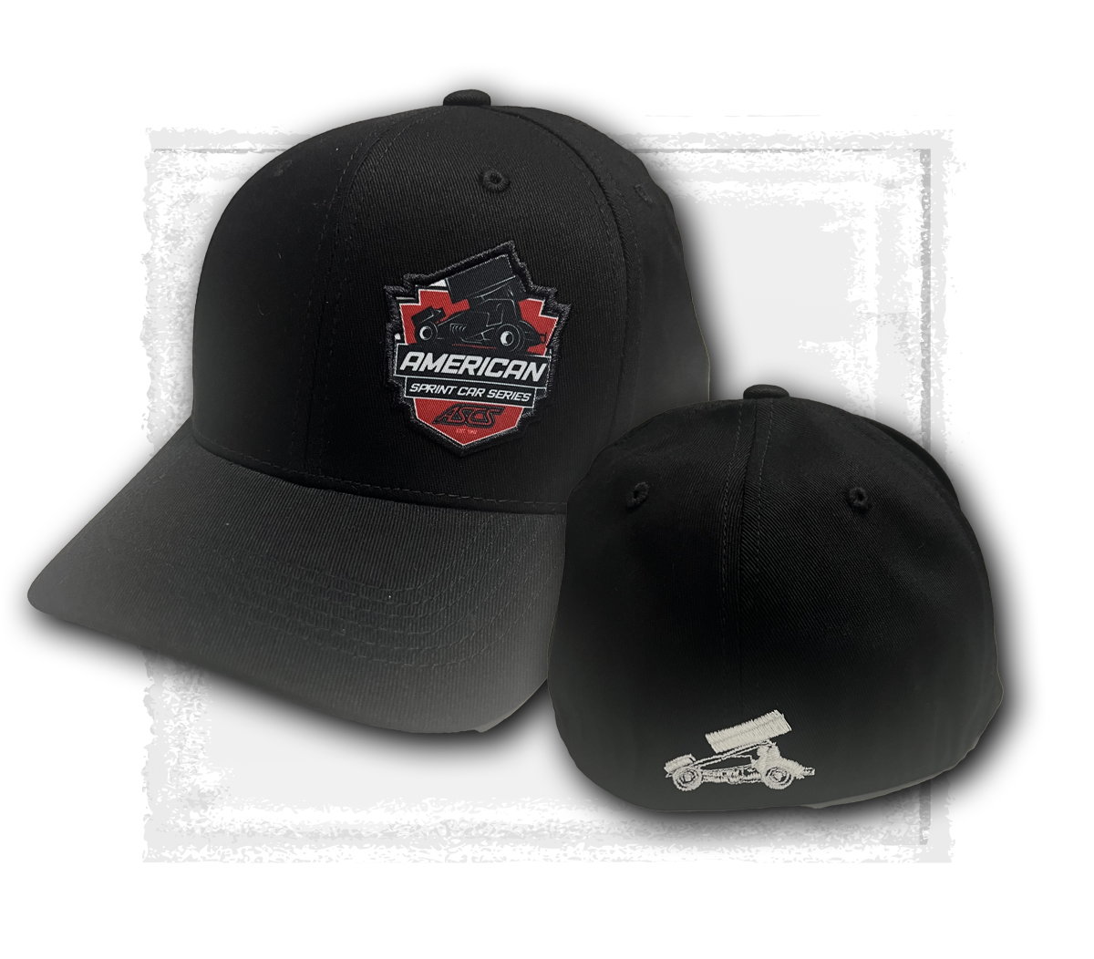 This sleek black fitted hat features the bold ASCS logo embroidered on the front and a detailed sprint car graphic on the back. Built for dirt track racing fans, it delivers comfort, style, and a full-throttle nod to the American Sprint Car Series.