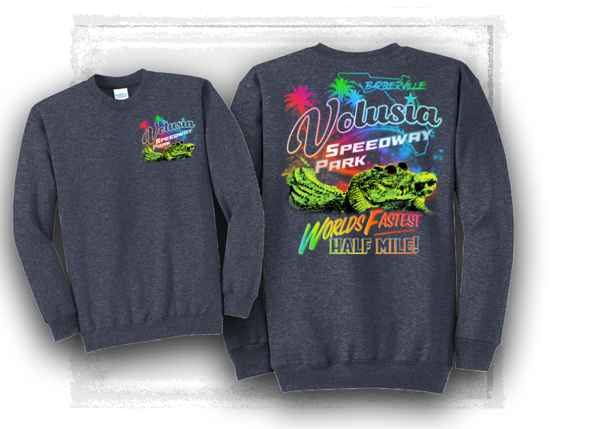 Stay warm and stand out with the Volusia Speedway Park Neon Gator Crewneck Sweatshirt. Featuring the eye-catching neon gator design, this sweatshirt reps Florida’s premier dirt track with bold, high-octane style. Soft, durable, and perfect for cool race nights, it’s built for fans who never miss a lap—rain or shine.