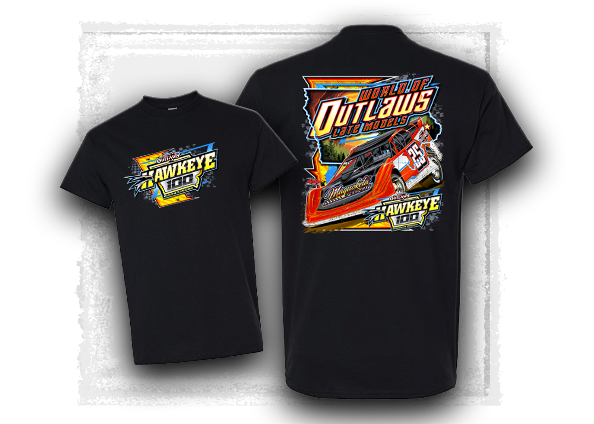 Celebrate one of the most exciting stops on the World of Outlaws Late Model Series tour with this Hawkeye 100 tee, spotlighting the legendary Maquoketa Speedway in Iowa. Bold graphics capture the roar of dirt track racing, complete with high-speed late models, flying clay, and race-night energy. Made for fans who live for the smell of fuel and the thrill of the checkered flag, this shirt is a perfect keepsake from an unforgettable showdown in the Hawkeye State.