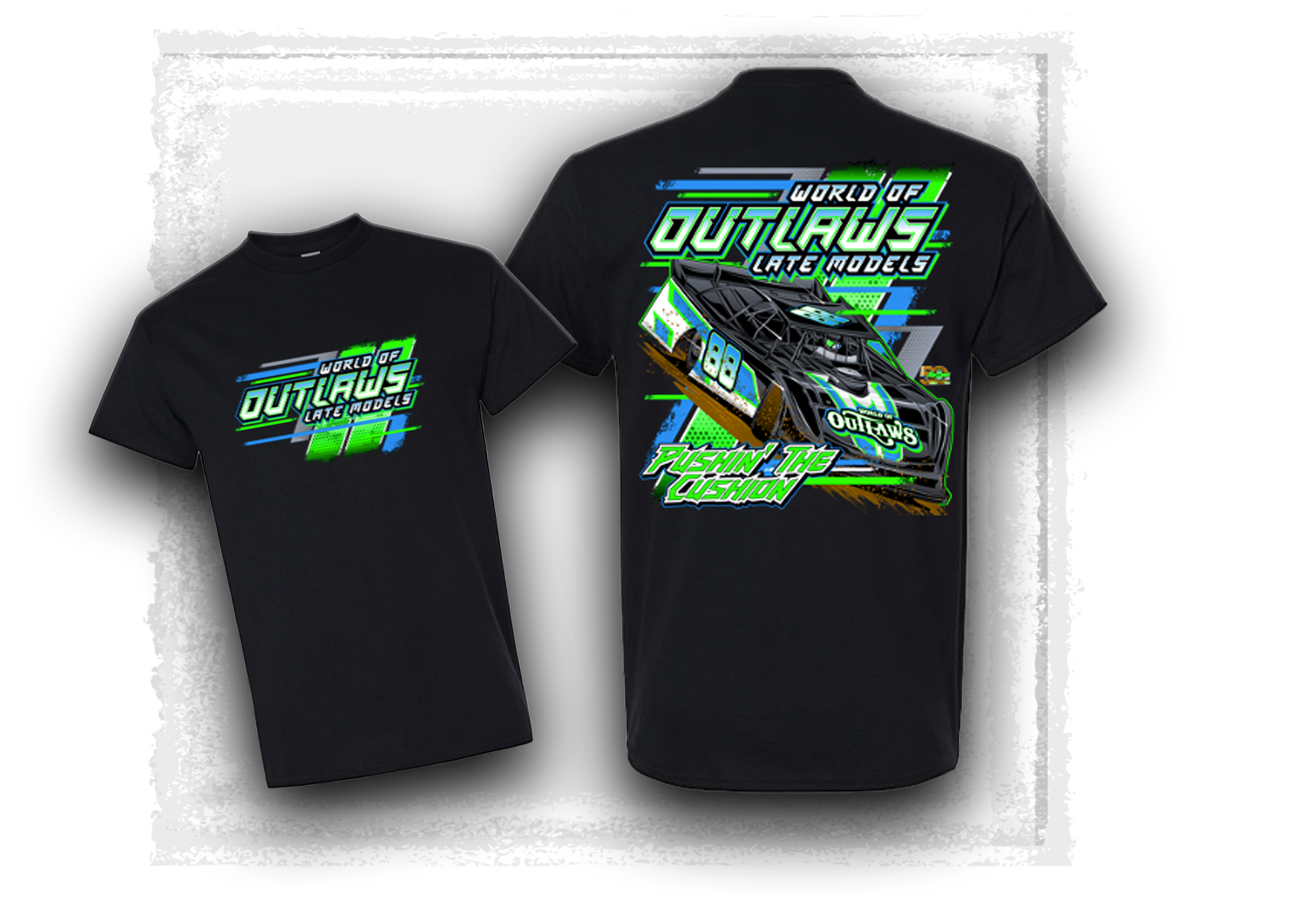 This bold tee celebrates the high-speed thrill of dirt track racing. "Pushin' the Cushion" refers to drivers riding the high line—right up against the loose dirt buildup, or "cushion," at the top of the track—to gain speed and make daring passes. A must-have for fans who love racing on the edge.