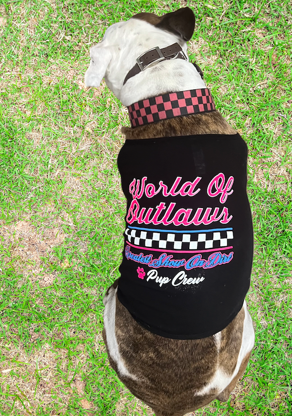 Get your pup ready to race in style with the World of Outlaws Pup Crew t-shirt! Designed for the ultimate racing fan’s furry sidekick, this shirt features bold graphics that showcase your dog's loyalty to the thrilling World of Outlaws dirt track racing. The shirt’s vibrant colors will have your pup feeling like part of the pup crew, all while keeping them comfy and cool. Perfect for race day, strolls, or cheering on the World of Outlaws, this tee lets your dog show off their need for speed in true racing fashion!