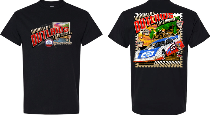 Show your dirt track pride with the World of Outlaws Real American Beer Late Model Series Wisconsin Tee!