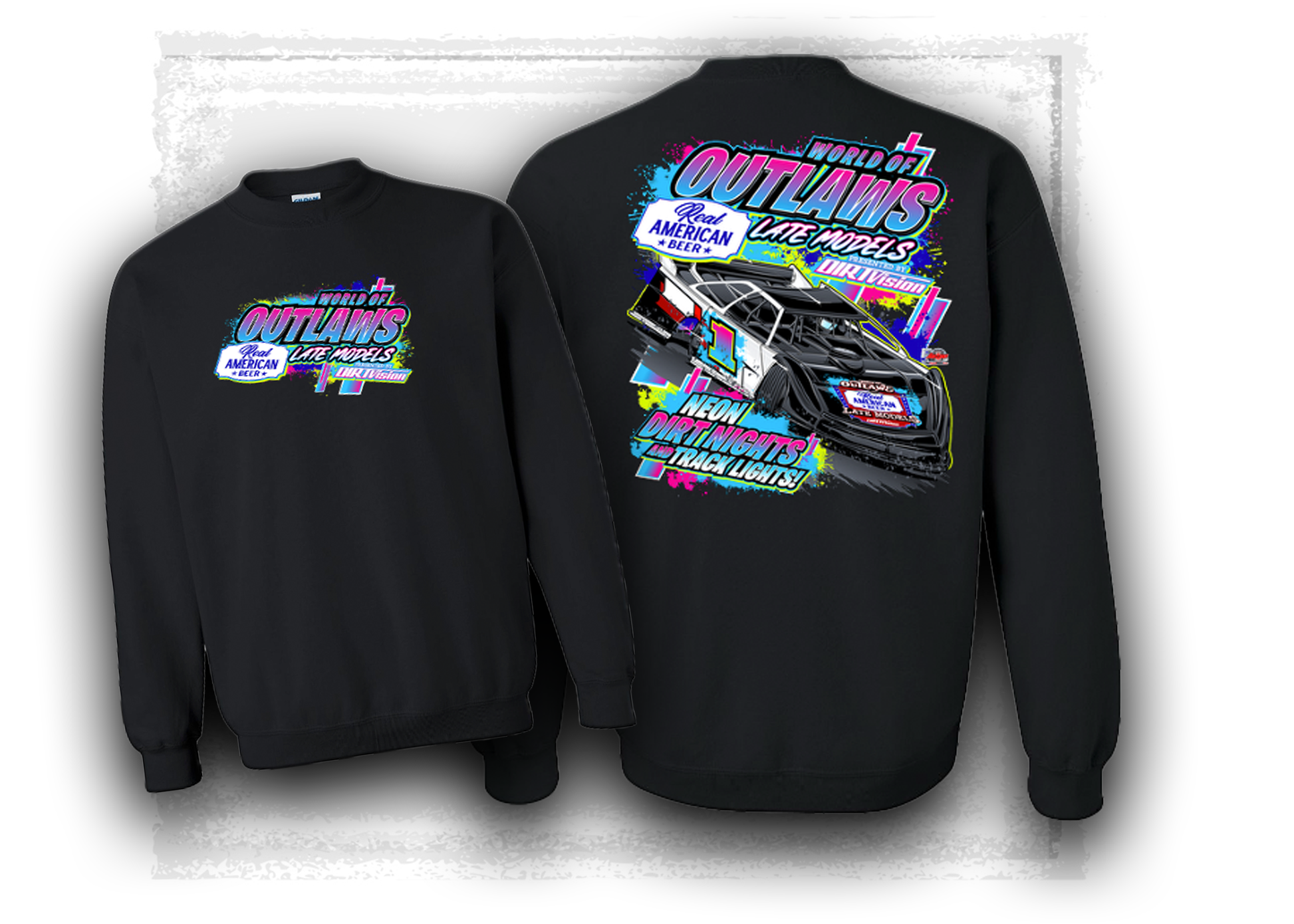 Turn heads at the track with this bold, neon-infused sweatshirt inspired by dirt-flying Late Model action and ice-cold beer under the lights. Featuring high-energy graphics and Real American Beer pride, this sweatshirt celebrates the ultimate dirt night vibe. Perfect for fans who live for horsepower, hometown tracks, and a cold one in hand. Let 'em know you came for the speed, the show, and the suds.
