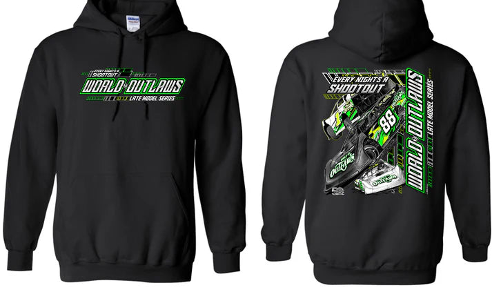 World of Outlaws Late Models - 88 Neon Green Hooded Sweatshirt - Black