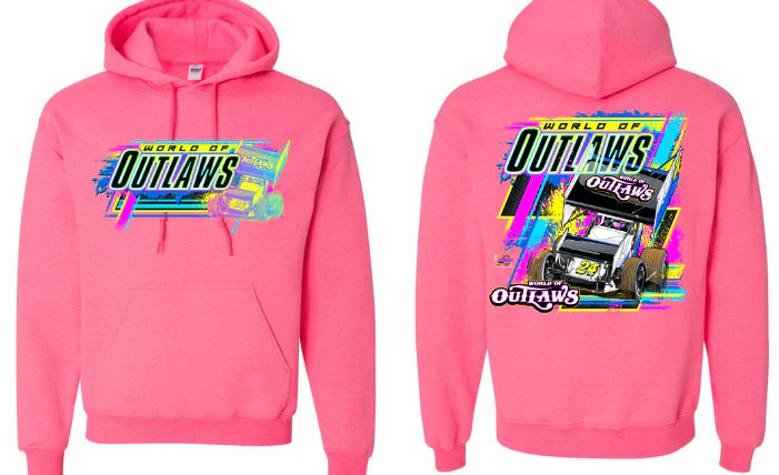 World of Outlaws Sprint Cars - 90's Neon Hooded Sweatshirt - Pink